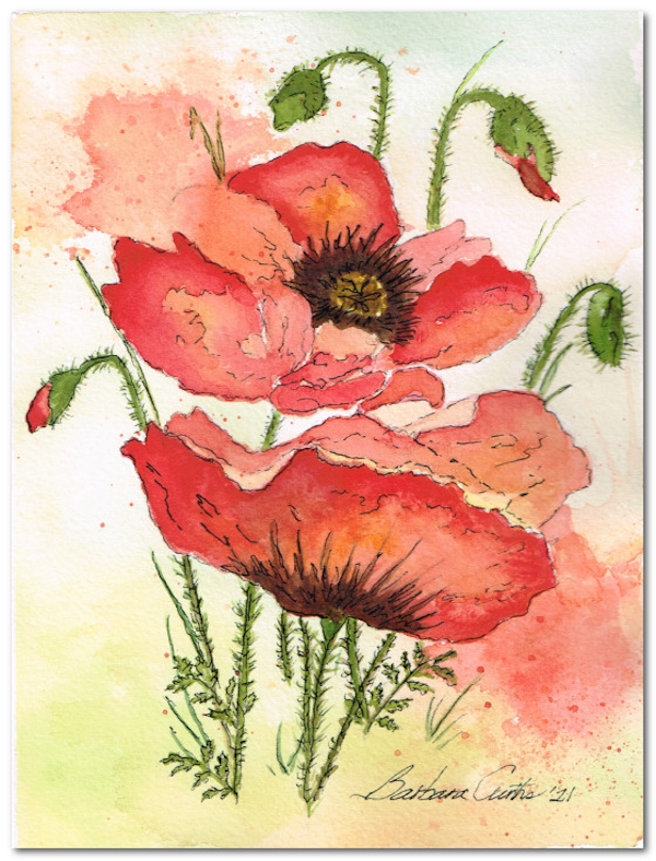 This painting of poppies can be done on card stock which then could be framed or sent to a special friend. It can also be done on watercolor paper in different sizes.