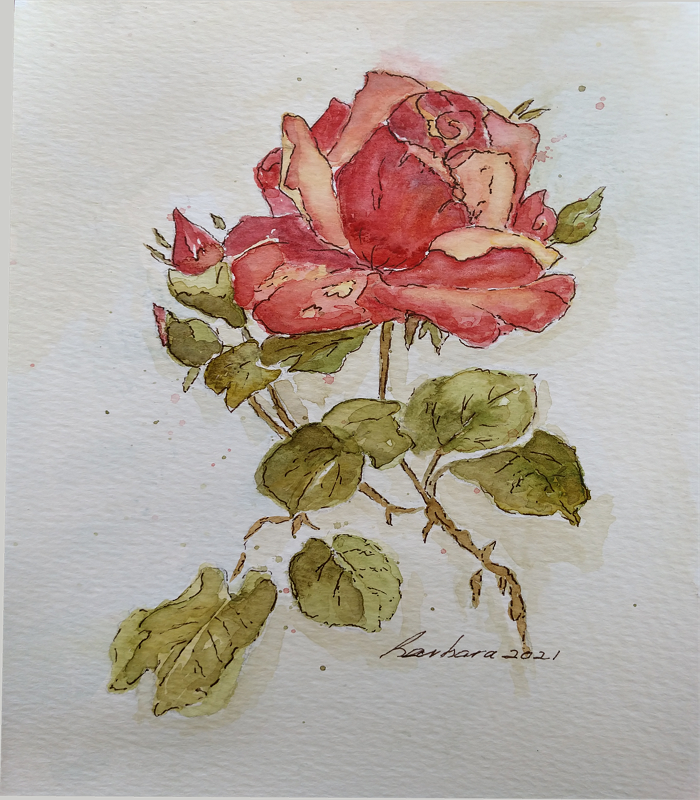 My Rose painting is a watercolor done on heavy watercolor paper. It can be painted on 6x8 or similar sizes. It could be painted on card stock for smaller paintings or for cards. If you choose a card, an envelope comes with it. All paintings are originals and signed. No prints.