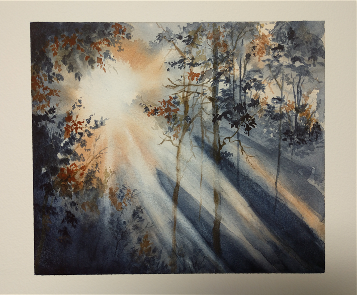 Morning light is a painting I found on Pinterest and made my own version of. Really interesting to paint as the sun's rays came into being. The painted portion is 8x10 with an inch border outside of that. This feature can be done on other scenes if you should have one you want this effect on. Just contact me via the Contact button below.