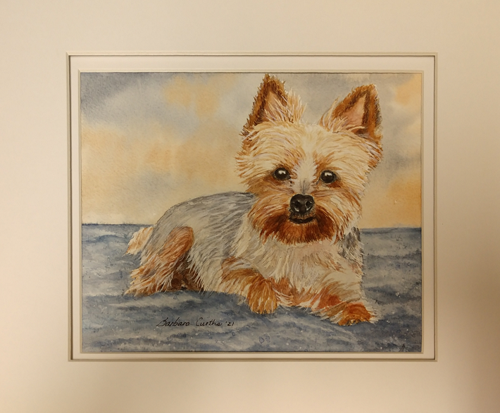 This little Yorkie belongs to a wonderful lady in France who wanted him painted, so I did. It was done in watercolor and is 8x10, 11x14 with matte. Paintings do not come matted.