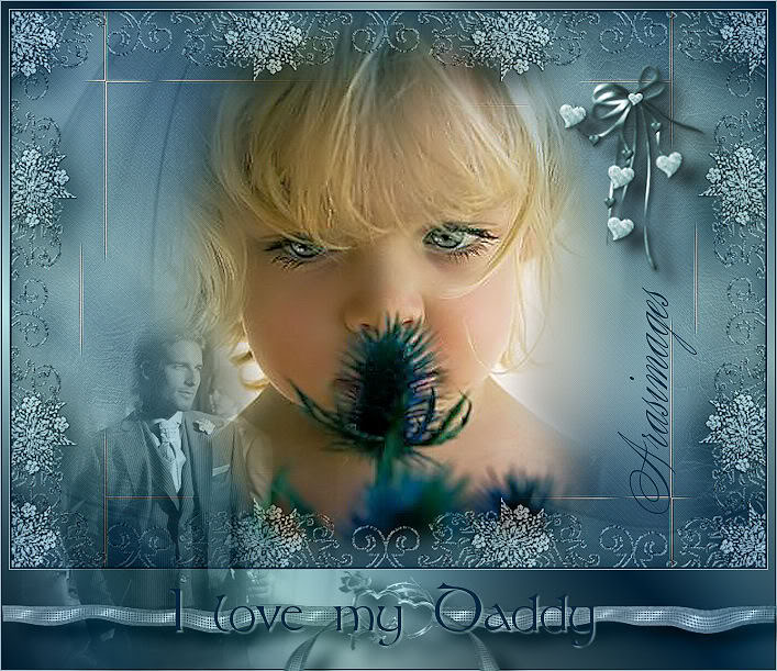 41. Using Background color of #002842, write I love my Daddy in large border over ribbon.