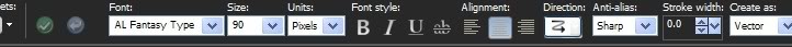 23. From Tool bar, select the Text tool. Open the font Al Fantasy Type and minimize to task bar.