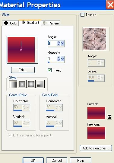 17. In Materials Palette, uncheck Invert. Flood fill the Selection with Gradient.