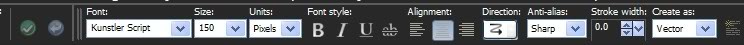 32. From Tool bar, select the Text tool (A). Find the font Kunstler Script, set to Size to 150. (see example).