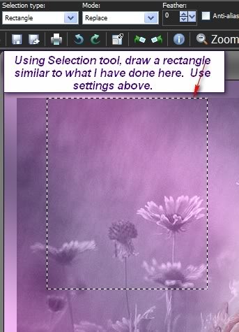 12. From Freehand Selections Tool, choose Selections. Draw a rectangle similar to what I have done in example below.