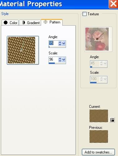 29. Set the Foreground to Pattern, Gold Beads, Scale 96 and Angle to 15.