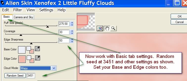 7. Effects/AlienSkin Xenofex2/Little Fluffy Clouds. See examples below for the settings. After you set each one, click OK.