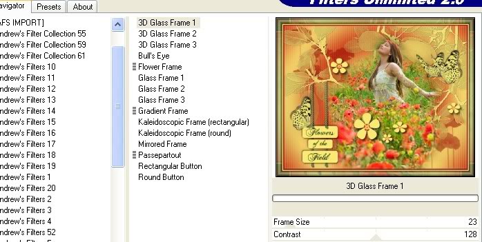 54. Effects/FiltersUnlimited2/Buttons&Frames/3D Glass Frame 1. Use settings below.