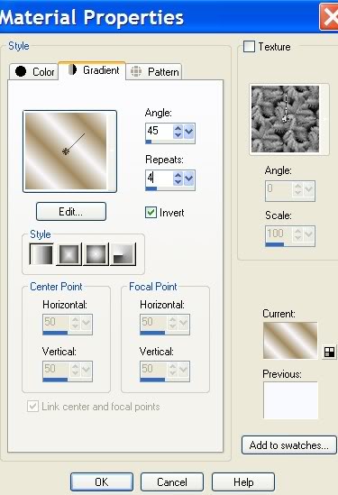 2. In Materials Palette, set to Gradient to Linear, Angle 45, Repeats 4, Invert checked.