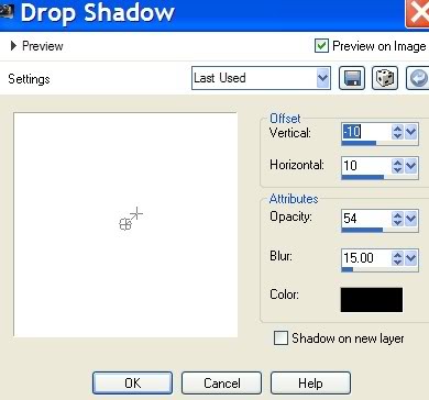 11. Effects/3-D Effects/Drop Shadow, Vertical 10, Horizontal 10, Opacity 54, Blur 15, color #000000.