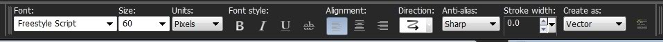 40. Set Units to Pixels and Stroke width to 0. Choose Font Freestyle Script, Size 60, color #f9daae and type "for my beloved".