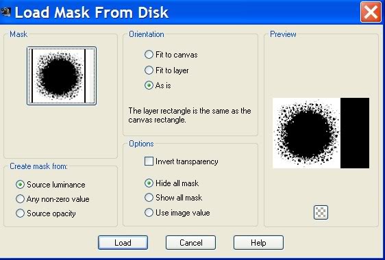 10. Layers/Load/Save Mask/Load Mask From Disk. Choose sg_heart-burst Mask. Apply. Use settings as I show below.