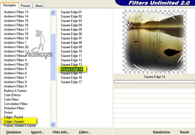 8. Effects/Filters Unlimited/Edges Square/Square Edge 14. Use settings below.