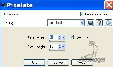 34. Effects/Distortion Effects/Pixelate. Use settings below.