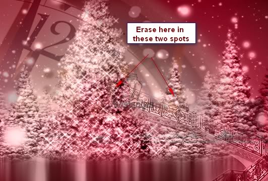 12. Using Eraser tool, erase the gold color of the clock from the pine trees.