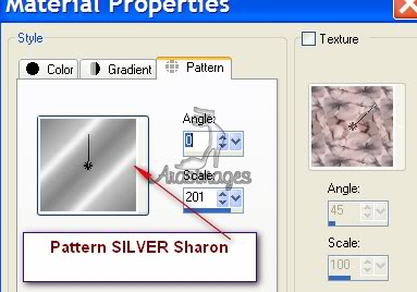 27. In Materials Palette, change Foreground color to Pattern SILVER Sharon.