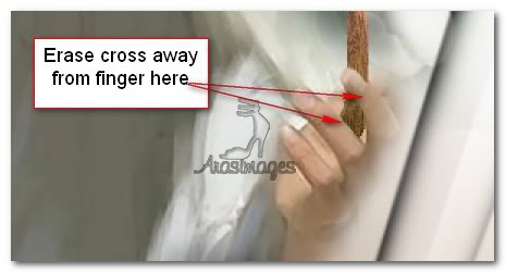 20. Scroll your image to 150% or larger. Using Eraser tool, using settings as shown below, carefully erase the bottom part of the cross away from His fingers so it appears He is holding the cross.
