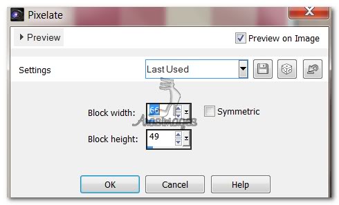 10. Effects/Distortion/Pixelate. Use example of settings below.
