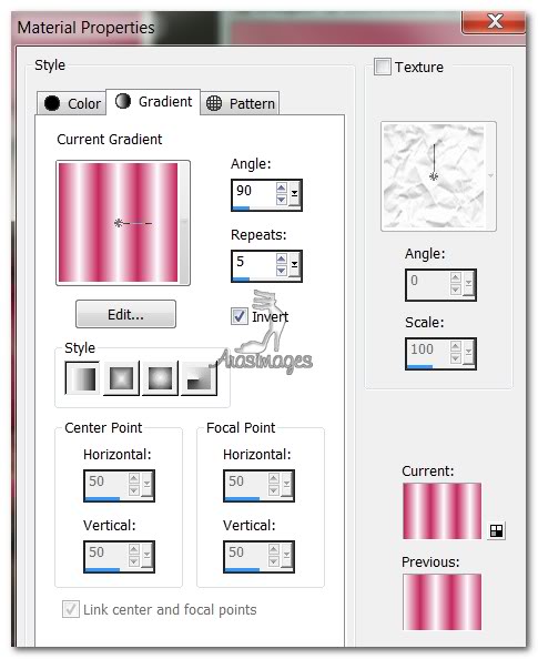 2. Create a Gradient in the Materials Palette using Linear, Angle 90, Repeats 5, Invert checked.