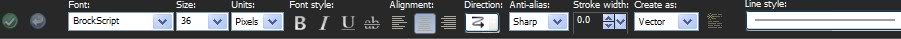 36. From the Tool bar, select the Text tool. Choose Font BrockScript, Size 36, set Background color to #042400.