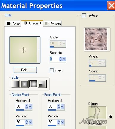 23. Using Magic Wand, activate the large border.24. In Materials Palette, create a Gradient using Sunburst, Repeats 0, Invert unchecked.