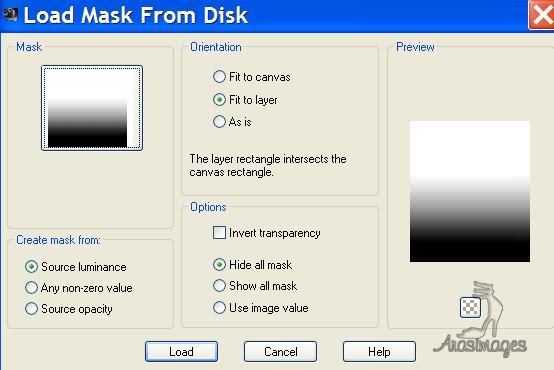 6. Layers/Load/Save Mask/Load Mask from Disk. Select Fadebottom_01 mask. Load.