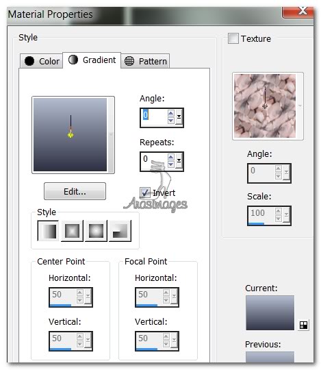 2. Create a Gradient using Style Linear, Angle 0, Repeats 0, Invert checked.