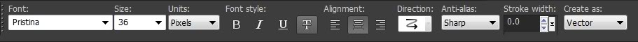 31. Select Font Pristina, Size 36, color #2d3041. Type "Bravest of the little braves". Convert to Raster Layer. Use settings below.
