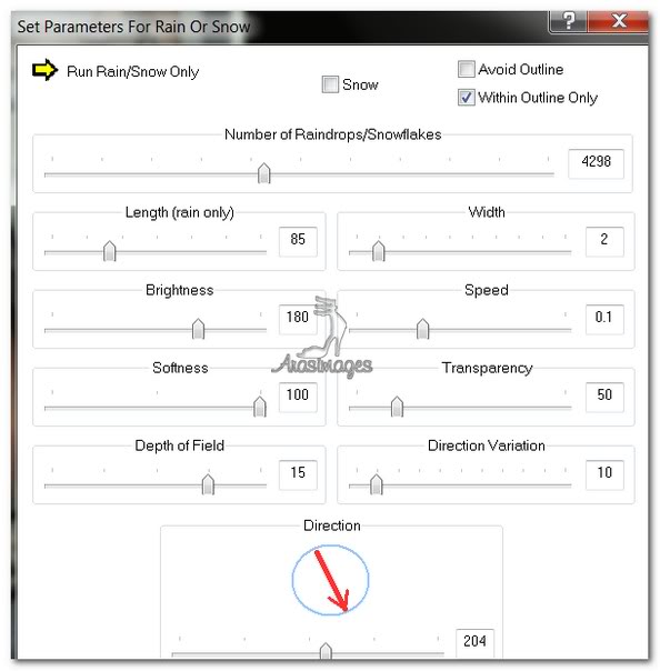 48. Click on the Rain tool to the left of the Y and set your settings as I have mine.