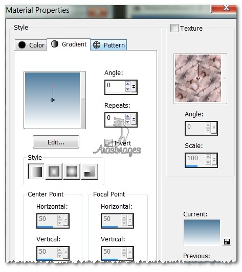 32. In Materials Palette, set to Pattern (current image) using the settings below.