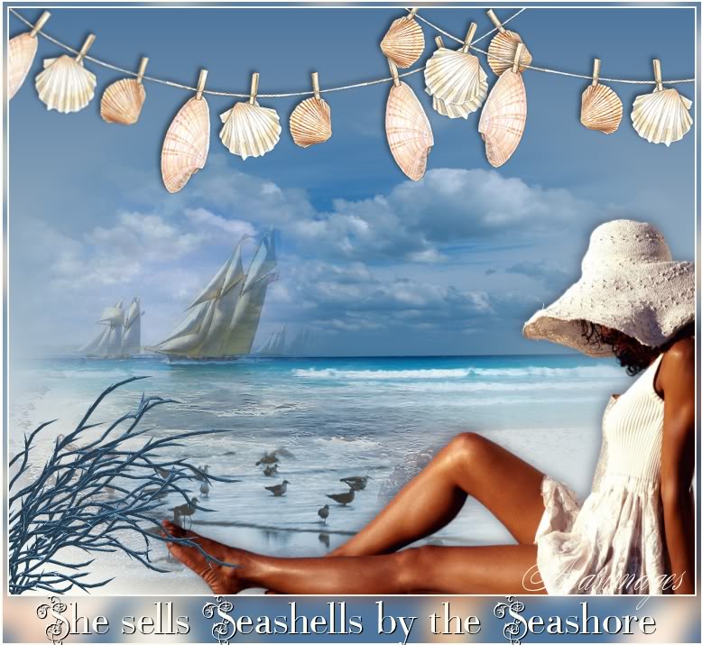 28. Effects/3D Effects/Drop Shadow of Vertical -3, Horizontal-3, Opacity 50, Blur 8, color #000000. Apply on each of the two layers of seashells.