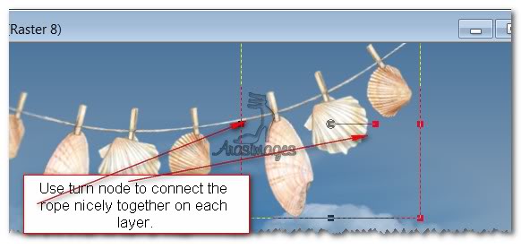24. Use the Pick tool turning node to turn the rope so it connects nicely with the one next to it. Do this to each layer of shells/ropes.
