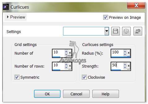 4. Effects/Distortion Effects/Curlicues. Use settings as seen below.