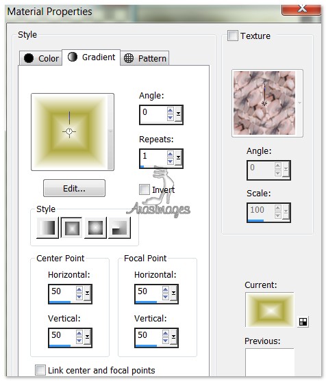 46. Change the Gradient to Angle 0, Repeats 7, Invert checked. (Foreground #eee3d5, Background #afa840. Flood fill the border.