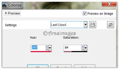 31. Adjust/Hue and Saturation/Colorize. Use settings below.