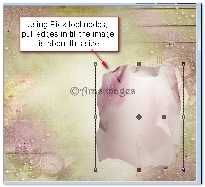 10. Using Pick Tool, grab the nodes and stretch out so the floral buds fit nicely within the pink paper.