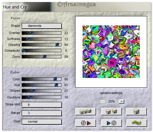 6. Effects/Flaming Pear/Hue and Cry. Use settings below.