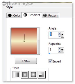 2. Create a Gradient using Foreground/Background colors, Style Linear, Angle 0, Repeats 1, Invert checked, all other settings not applicable.