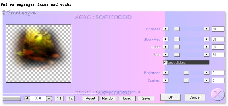 Unzip the materials into a working folder. Open the materials in PSP, copy and close originals. Place the font Annie BTN into your PSP/Fonts folder. Plugins used in this tutorial are Xero/Softmood.