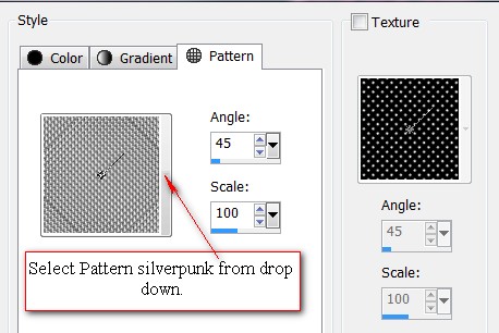 Unzip the materials into a working folder you have created on your desktop named Seriously Pink. I have used the plugins Penta/Color Dot and PhotoshopII/Bailey. Place the Preset Shapes Tiles.pspshape in your Preset Shapes folder. If your PSP does not have the included Styled Line dotted_4 installed, place the dotted_4 Styled Line in your PSP/Styled Line folder. Place the Pattern silverpunk.pspimage in your PSP/Patterns folder. It is assumed you have a working knowledge of PSP to follow these directions. I have used PSPX5 to create this tutorial but other versions of PSP will work although older versions will not have the Color Changer required for some of my tutorials.