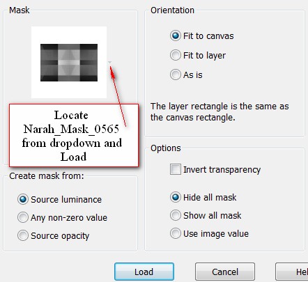 11. Layers/Load/Save Mask/Load Mask from Disk. Find Narah_Mask_0565 from drop down. Load.