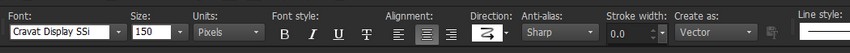 49. From Tool bar, select the Text tool. Find Cravat DisplaySSi, Size set to 150, color #f8e07d, line solid. Type the letter "C". Change the size to 72 and type out "olors of". Change size back to 150 and type the letter "S", change back to size 72 and type the letters "pring". Convert to Raster Layer.