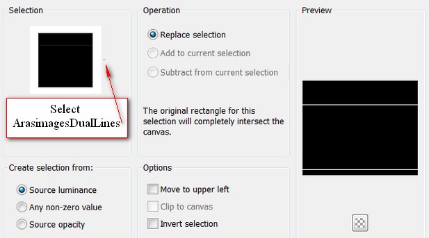 30. Selections/Load/Save Selection/Load Selection from Disk. Select the Selection ArasimagesDualLines. Load.