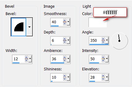 51. Effects/3D Effects/Inner Bevel. Selections/Select None.