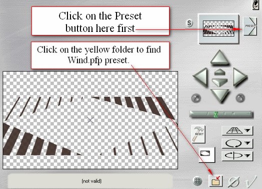 12. Effects/Andromeda/Perspective. Click the Preset button in Andromeda/Perspective in upper right corner. Select the Preset Wind.pfp from the yellow folder at the bottom of Andromeda/Perspective.