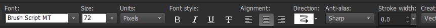 38. From Tool bar, select Text tool. Select the Font Brush Script MT, Size 72.