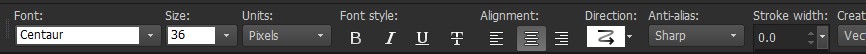 42. From Tool bar, select the Font Centaur, Size 36, color #fbfbfb, other settings as seen below.