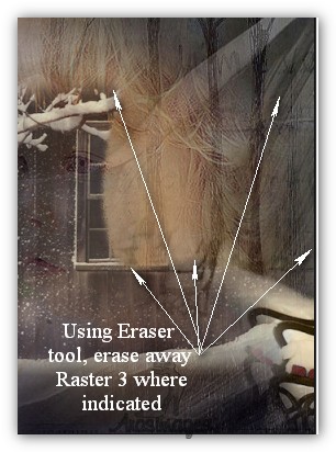 16. Highlight Raster 3. Using Eraser tool, erase away the building covering the tree and benches on right. See below.