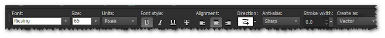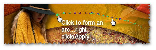43. From Tool bar, Select Text tool. Use settings as seen below, Style line Solid . Hover the cursor over the line until you see a curved line under the T. Begin to type the words "Splendor of Fall Days". Adjust if necessary. Convert to Raster Layer.