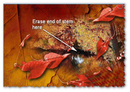 24. Pull into upper right corner. Using Eraser tool set to Size 30, erase the end of the leaf stem as seen below.